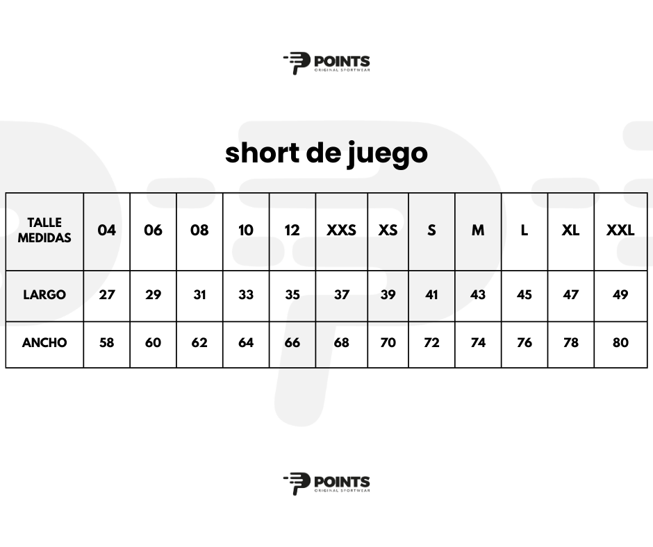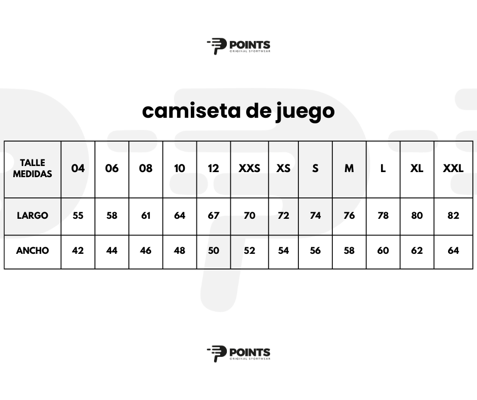 GUIA DE TALLES EQUIPO DE JUEGO